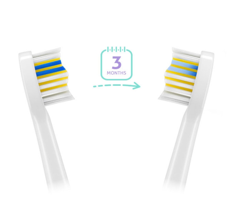 V kompletu prejmete tri nadomestne glave Compact: Standard za vsakodnevno čiščenje, Sensitive za občutljive zobe in Whiten za učinek beljenja. Glave imajo modre ščetine, ki sčasoma zbledijo in vas opozorijo, kdaj je čas za menjavo, običajno po približno treh mesecih uporabe.