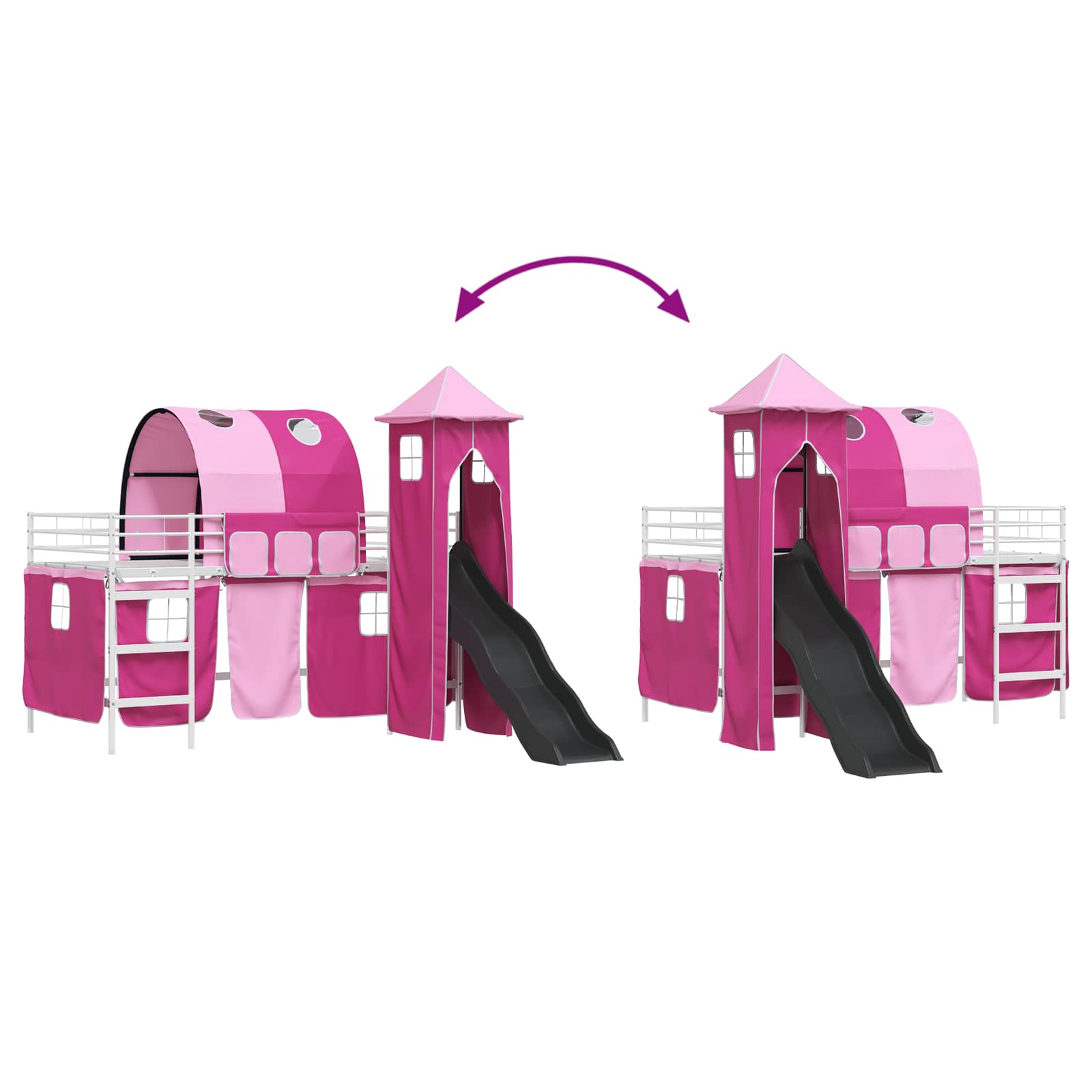 Ta moderna otroška postelja na podstrešju z zavesami, lokom, toboganom in stolpom ponuja zabavno in praktično rešitev za otroške spalnice. Njena sodobna zasnova daje eleganten in svež videz ter postane prava zvezda v prostoru. S stolpom in privlačnim toboganom združuje stil in zabavo, kar odhod v posteljo spremeni v veselo izkušnjo. Njena pametna zasnova optimizira prostor, kar je super za aktivne otroke in vsebuje lastnosti, ki spodbujajo domišljijo in ustvarjalnost. Kombinacija privlačnega videza in praktičnosti naredi to posteljo idealno izbiro za dinamične prostore.