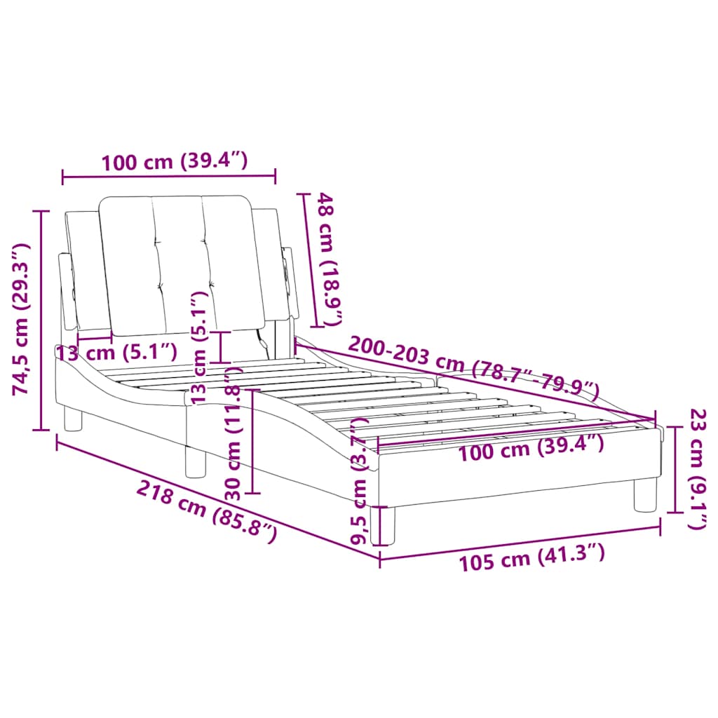 • Primerna velikost vzmetnice: 100 x 203 cm (Š x D) (vzmetnica ni vključena)