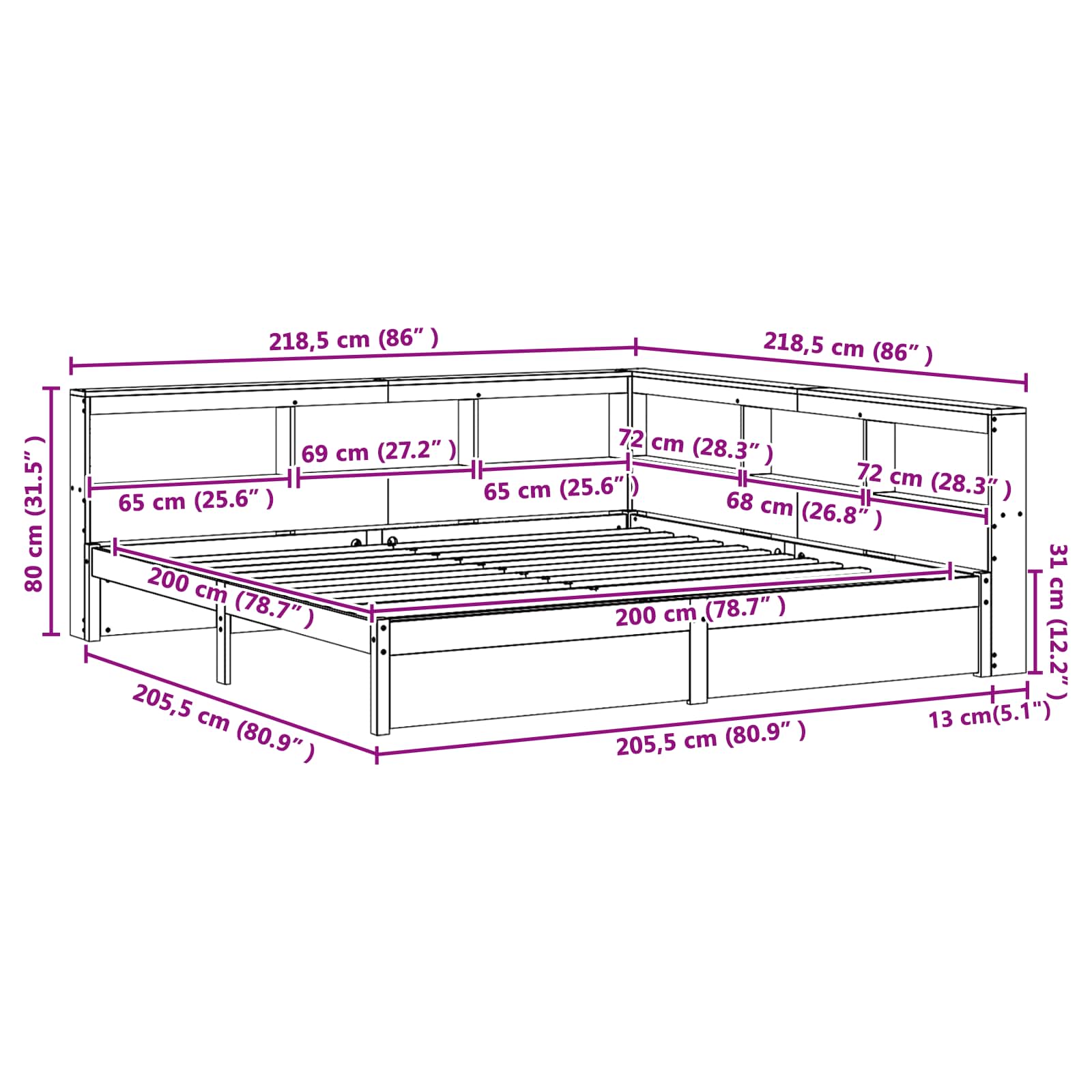 VIDAXL postelja z vzglavjem, trden borov les, voskasta rjava, 200×200×80 cm